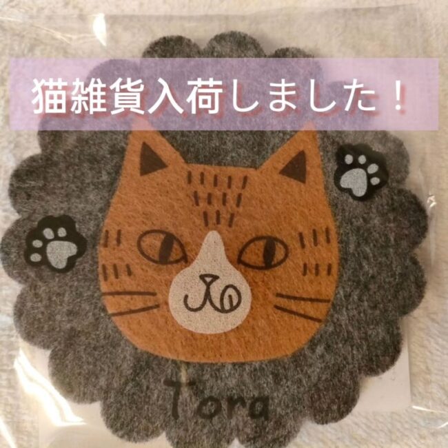 『猫雑貨』入荷しました♪一番のオススメは、#フェルトコースター です。とってもカワイイ3種揃いグラスを置きたくないかも!?(笑)次に #アクリルキーリング もポップで他には、#ハンカチ 、そして人気のエコバッグの再入荷などです。ご来店の際にはぜひご覧になってみてください。お気に入りが見つかるはず!!ご自分用 に、ギフト に猫の日にプレゼントしても♪